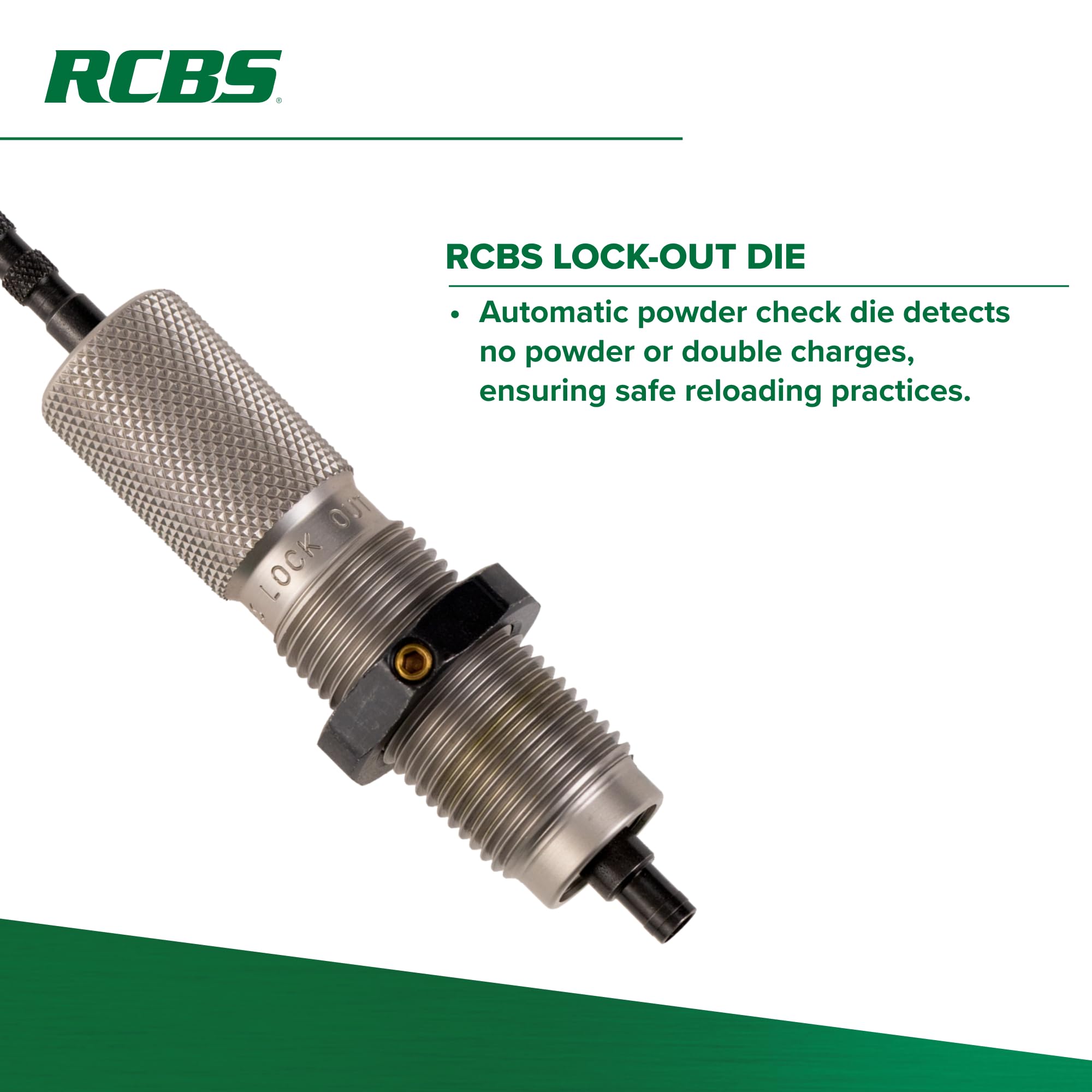 - RCBS Lock-Out Die: Automatic powder check die detects no powder or double charges, ensuring safe reloading practices.