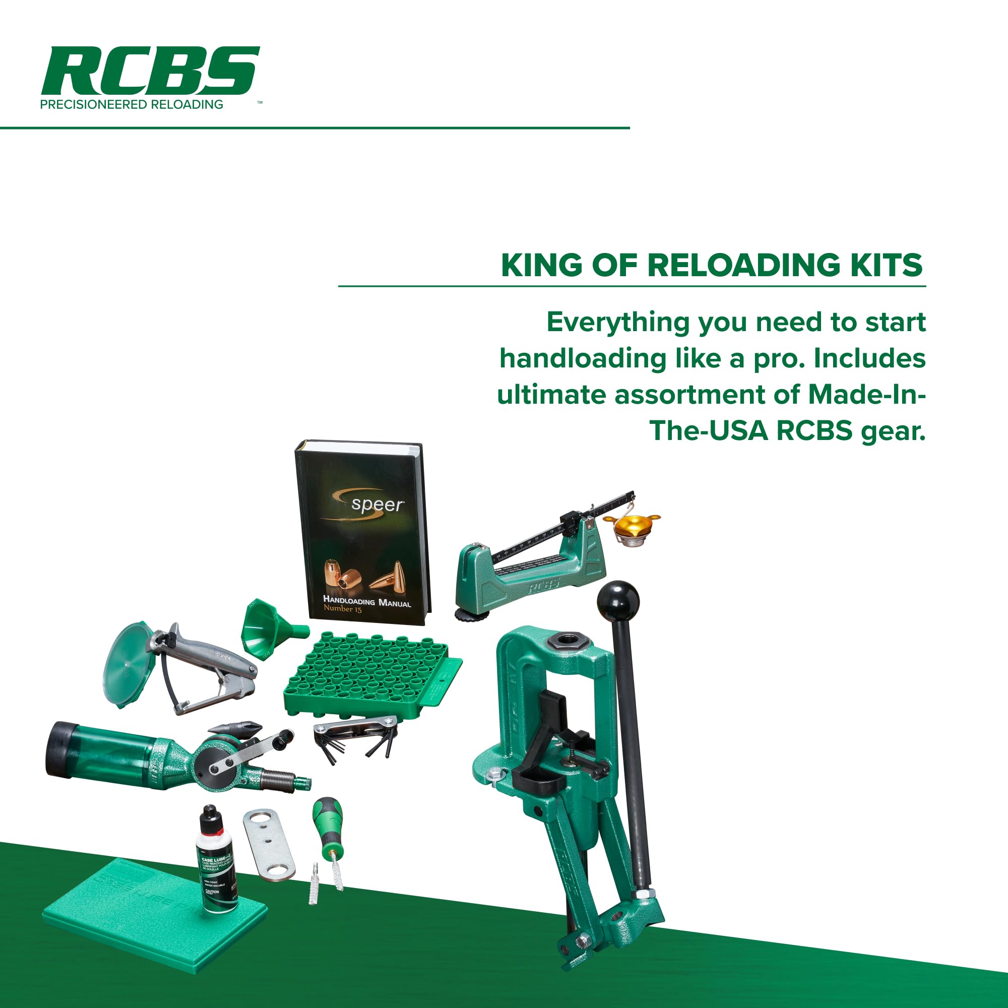 RCBS Rock Chucker Supreme Master Reloading Kit, Reloading Equipment Kit with Press, Scale, Powder Dispenser and More Green